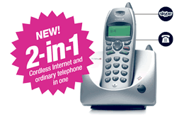 Tot ik via de Skype Accessoires pagina een gewone draadloze telefoon tegen kwam (DU@Lphone van Olympia) waarmee je, naast gewone telefoongesprekken, ook kan bellen naar je Skype-vrienden!Wat meer is... in kombinatie met :