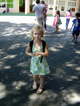 Na dit zomerverlof zit Sara dus nu in de 3de kleuterklas (SGA - Section des Grandes A) in dezelfde school als vorig schooljaar (Notre-Dame des Anges te Faa'a (waar ook de luchthaven is)). De klassen zijn wat door elkaar gehaald t.o.v. vorig jaar, zodat ze niet met dezelfde vriendjes/vriendinnekes in de klas zit, maar dat mag met de nieuwe (juffrouw) maîtresse Miranda geen probleem zijn... ;-)