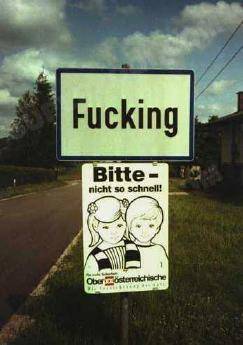 Het Oostenrijkse stadje "Fucking" (nabij Salzburg, met amper 150 inwoners) heeft haar plaatsnaamborden diefstal-proof gemaakt.