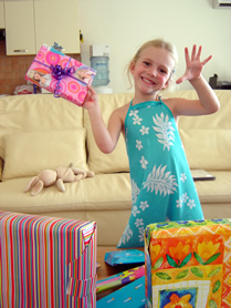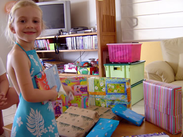 Het appartement was versierd met balonnen, en op school mocht ze zelf cadeautjes (Winnie The Pooh-zakje met snoepje, balon, fluitje en kleurpotlood erin) uitdelen aan de vriendjes/vriendinnekes. Na school wachtte thuis een ganse hoop pakjes en verjaardagskaartjes van (groot)ouders en familie, en ze was heel blij ermee!