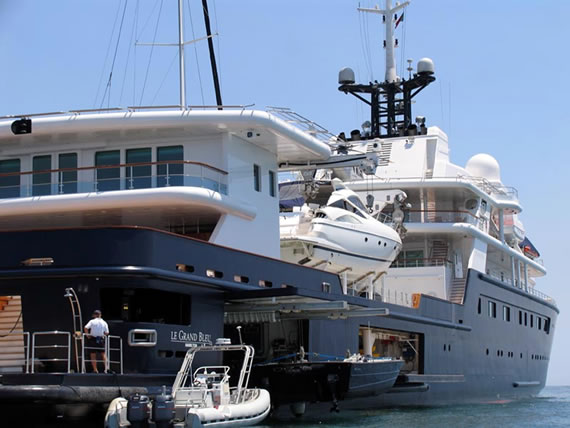 Le Grand Bleu (354-foot!) was ontworpen als een "expedition yacht", waardoor het geheel onafhankelijk lange reizen kan maken.