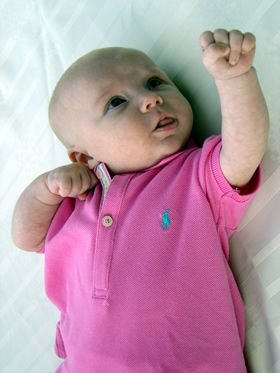 Blauw-grijze ogen heeft ze, en intussen weegt ze al 5,1kg! Hieronder nog enkele foto's voor de liefhebbers...