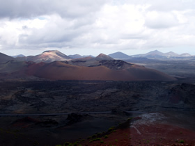 Het nationale park Timanfaya bestaande uit rotskraters, lavavelden, etc.