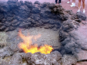 Toeristen worden op verschillende manieren getoond hoe warm het slechts een meter onder de grond is. Grind op slechts 10 centimer diepte kan niet in de hand worden gehouden omdat het te heet is. Op één meter diepte wordt een stuk stro tegen het steen gehouden dat spontaan ontbrandt. Wanneer een emmer water in een gat in de grond wordt gegoten spuit dat met een geweldige kracht omhoog.