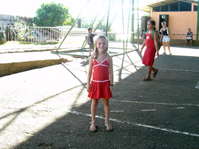 Rond 7u waren we ter plaatse, enkele bekende gezichten waren er toch te zien (van haar vorige school die ook de overstap hebben gemaakt) en 25 minuutjes later ging de bel. Op de (overdekte) speelplaats werden vervolgens de klassen ingedeeld en daarna mochten de ouders ook even mee naar de klas. Voor een eerste kennismaking en "briefing".