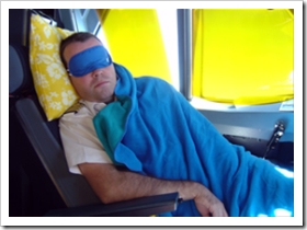 ... net zoals de passagiers eten wij, drinken (veel), lezen (krant, boeken, tijdschriften, vliegmanuals), werken wat op de PC, luisteren naar muziek (iPod, PC), babbelen, discussiëren, en... slapen/dutten ook een beetje natuurlijk! Zo gaat de tijd sneller voorbij én zijn we uitgerust(er) voor de landing. Natuurlijk slapen we nooit beide op het zelfde ogenblik ;-)