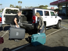 Na aankomst in Los Angeles was het al onmiddellijk prijs... één valies was er niet bij.