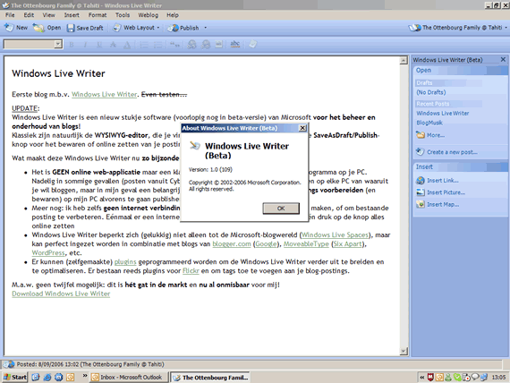 Windows Live Writer is een nieuw stukje software (voorlopig nog in beta-versie) van Microsoft voor het beheer en onderhoud van blogs!