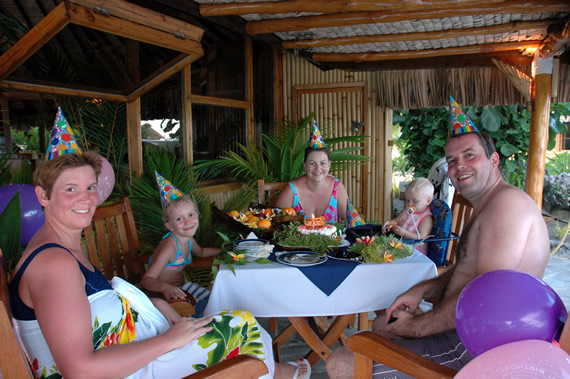 De voorbije dagen zaten we op het atol Manihi met de kinderen en de meter van Roos... om haar eerste verjaardag te vieren (aan het zwembad).
