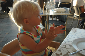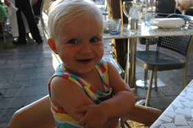 Als je nu (bijna één jaar later) de foto's vergelijkt van in Sydney in maart 2006, is Roos wel degelijk erg veranderd. Ze heeft zelfs geleerd om met de armpjes gekruisd te zitten ;-)