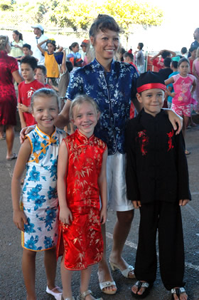 Ook bij Sara op 't school in Saint-Hilaire gaven de kinderen van CP (Classe Préparatoire, 1ste leerjaar), verkleed natuurlijk, een Chinees dansje en een Chinees liedje ten beste, tijdens het spektakel voor de ouders.