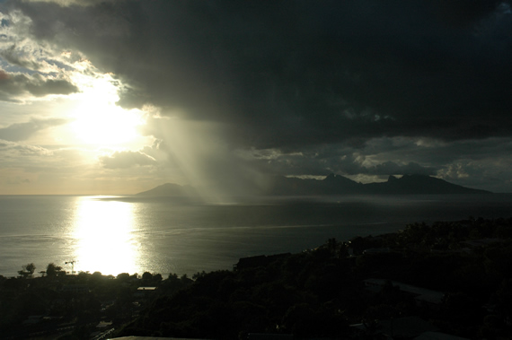 Bij aankomst in Tahiti hadden we dit zicht op Moorea vanuit ons appartement.