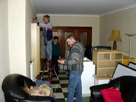 Vandaag kwam de firma Coppens uit Boutersem (meubelbewaring) dan alle meubilair verder inpakken en in een container steken (voor later).