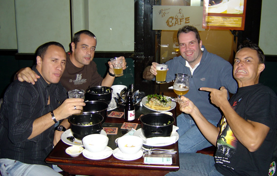 Wat is Sydney zonder een bezoekje te brengen aan het Belgian Beer Café met enkele Tahitiaanse collega's (vlnr Fabrice Soriano, Jean-Philippe Noinain, ikzelf en Ludovic Vanaa) met mosselen-friet en nen Hoegaarden om dat uiteindelijk (als beloning) een Belgisch paspoort te krijgen.