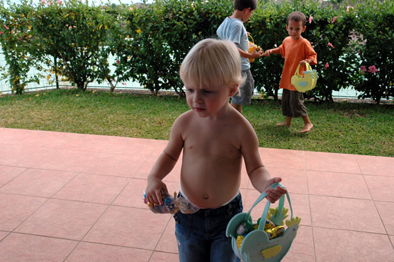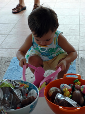 Rustig ontbijten en daarna konden de kinderen gaan paaseieren rapen in de tuin!
