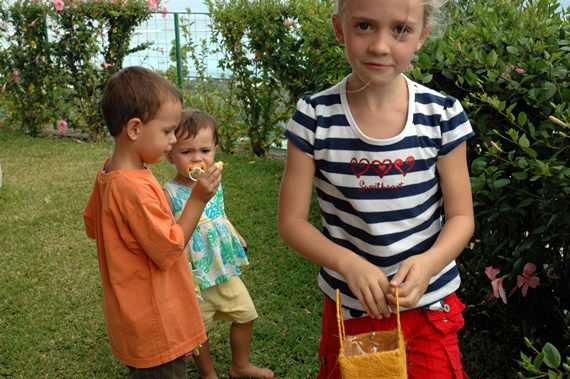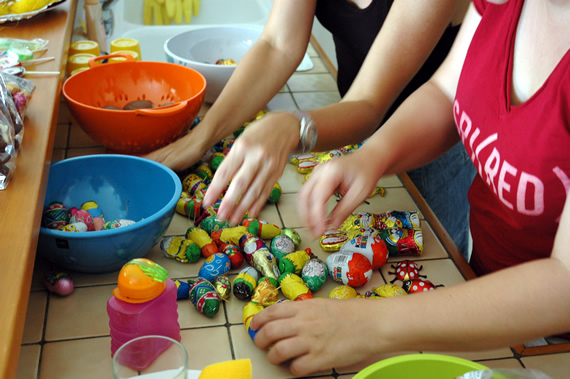 Waarna de mama's de hopen chocolade eerlijk mochten verdelen onder de 6 kinderen.