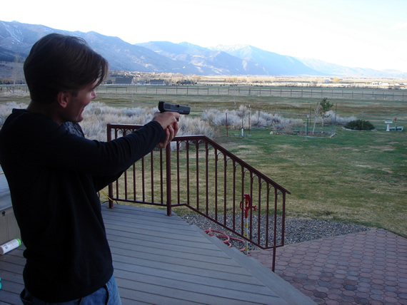 Later, net voor het avondeten, mochten we ons wat uitleven met hun wapen-arsenaal. Typisch Amerikaans natuurlijk ;-)