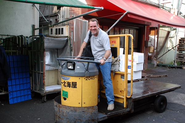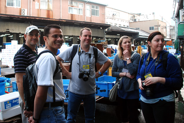 Vandaag echter moesten we (enkel de 3 piloten wilden mee) om 04u50 in downtown Tokyo zijn! Via via hadden we nl. een afspraak met ene Kenneth Banwell die ons een rondleiding zou geven op de Tijuki Fish Market!