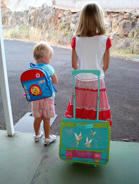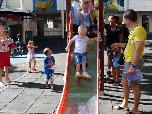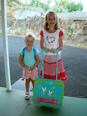 Vandaag is het echter de eerste 'echte' schooldag voor Roos. Ze gaat nu naar de eerste kleuterklas (SP) in N.D.A. (Notre Dame des Anges) in Faa'a, waar ook Sara vroeger kleuterschool gelopen heeft.