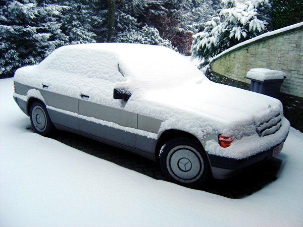 De auto (Mercedes 190D) is al 13 jaar oud en heeft geen krimp gegeven met dit barre winterweer (tot -18°C!)