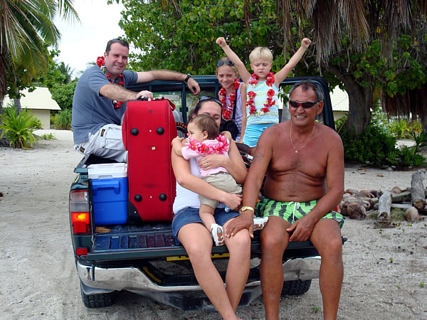 Na een vluchtje van 1 uur, werden we op de luchthaven opgepikt in lokale stijl voor een rit van amper 1km...