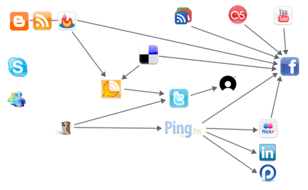 Ook ik ben hierin zeer actief met allerlei accounts die ik toch proberen "live" te houden. Om alles wat synchroon te houden en om niet telkens op 20 verschillende sites in te loggen als ik iets te vertellen heb, gebruik ik heel wat 'tools' om informatie automatisch laten door te stromen.