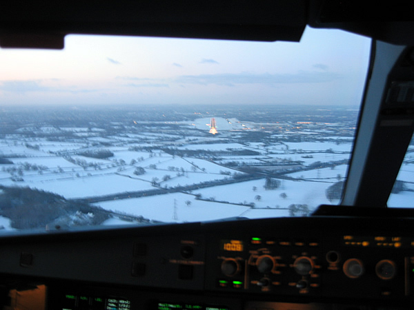 Onze terugvlucht (ASI-BZZ) echter was al met 12u (en uiteindelijk 15u) uitgesteld wegens de sneeuwstormen boven de UK. De luchthaven van Brize Norton, onze bestemming, was nog steeds gesloten toen we vertrokken... En dat was na 8u vliegen nog steeds zo.