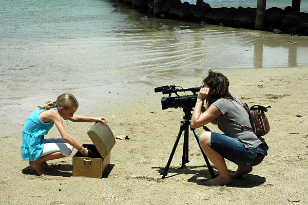 een hele week komen interviewen en filmen (op 't strand, in 't school, thuis,...) voor een