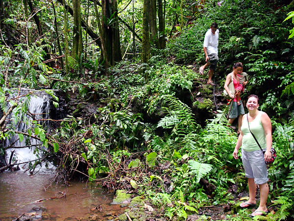 Waarna de voorziene (rustige) wandeling in 't park uitdraaide op een onverwacht stevige boswandeling in Les jardins d'eau de Vaipahi!