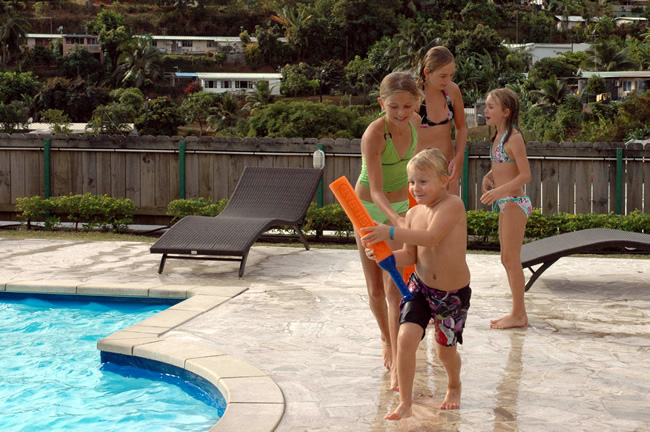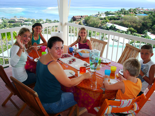 Toevallig maken we daar kennis met een Canadees-Duitse familie (Michael, Cornelia, Zoe, Maia, Liam) die met hun "Gromit"-boot een reis rond de wereld maken, en na de Galapagos-eilanden, nu in de haven van Taina liggen aangemeerd.