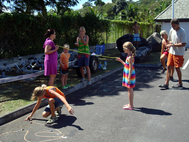 Maar eerst enkele (water)spelletjes aan wal...