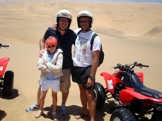 Het zou dan ook een sportieve (maar winderige) dag worden vandaag, met om te beginnen quadbiking in de enorme duinen van de Namib-woestijn (de oudste woestijn ter wereld), ten zuiden van Swakopmund!