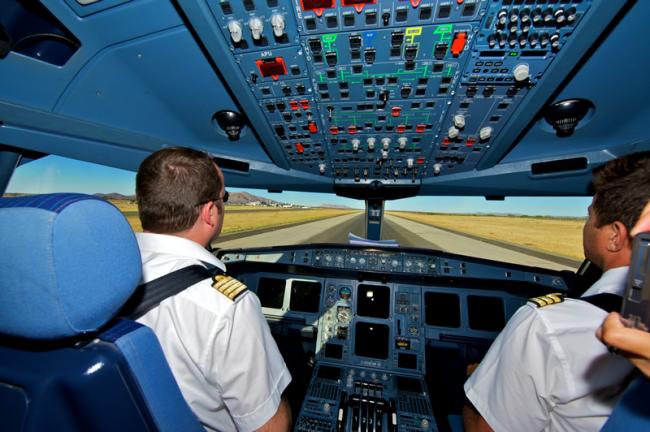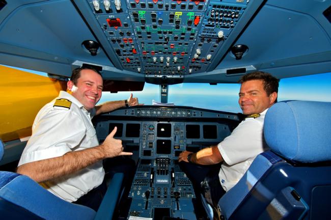 De landing op zicht (visual approach) op RWY 26 (4,5km lang!) werd perfect uitgevoerd door de eerst officier (co-piloot), die rechts van mij zit.