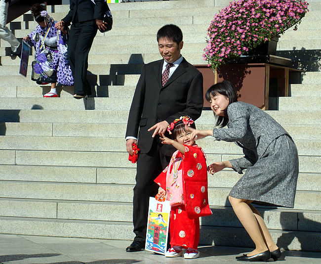 Wandelen langs de gezellige straatjes van Narita, tot aan de Narita-san tempel, waar er net een soort van communie-viering was voor de kinderen, die mooi uitgedost waren.