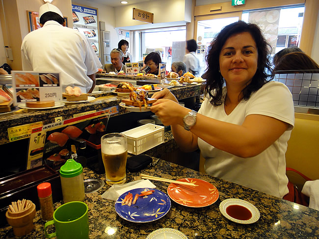 Na landing en aankomst in het Excel Tokyu hotel in Narita was het al direct tijd voor sushi als avondeten (in AEON Shopping Maill)!