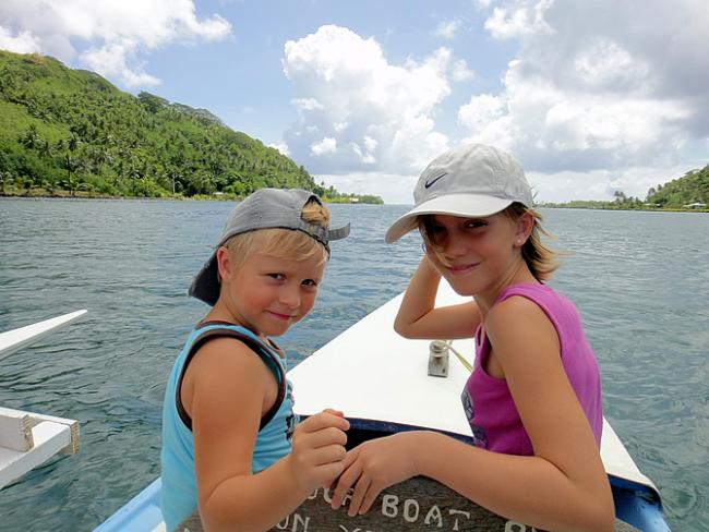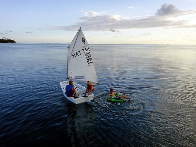 Vandaar dit bezoekje aan hun boot in de lagoon van Huahine, één van de "benedenwindse eilanden", op half uur vliegen van Papeete.
