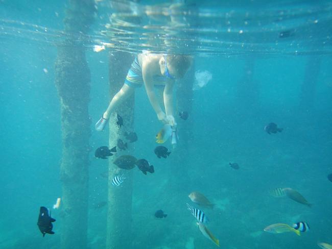 In de namiddag was er nog wat tijd voor snorkelen... en vissen eten geven.