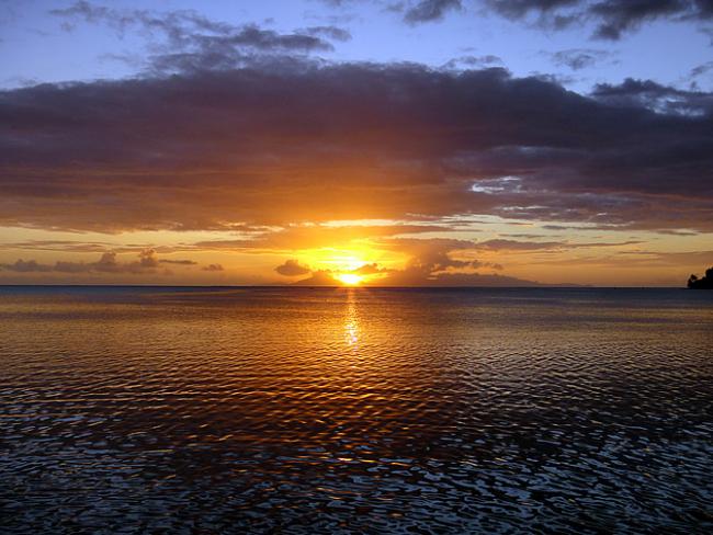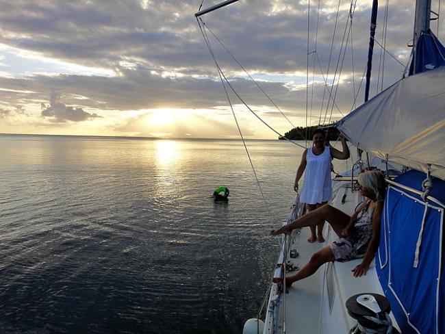 Met een mooie zonsondergang (achter Raiatea) als kers op de taart...