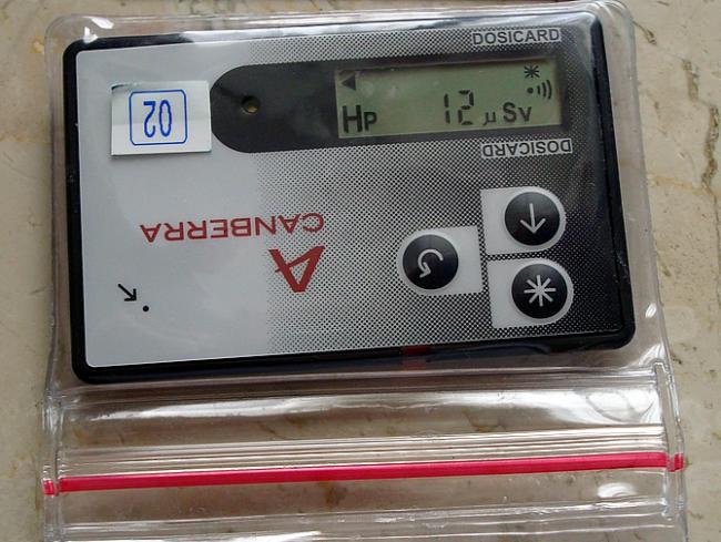 De persoonlijke dosimeter die we moesten gebruiken en overal meenemen tijdens deze Japan-trip van 2 dagen gaf bij mij een ioniserende straling aan van 12 μSv/h (micro sievert).
