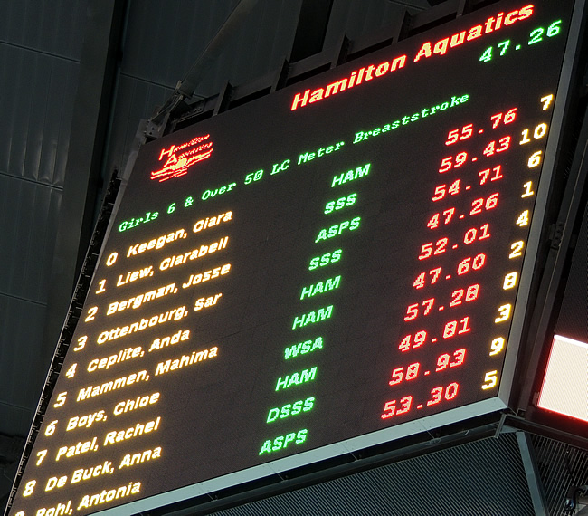 Sara was eerste in haar reeks (50m schoolslag) in 47'26, en eindige uiteindelijk op een mooie 11de plaats (op 31)!