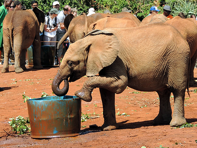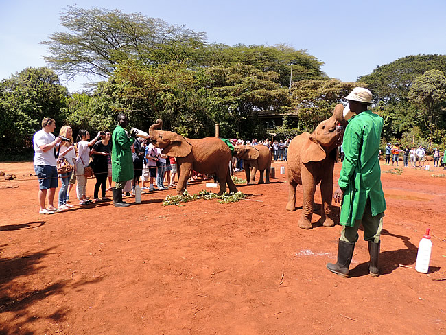 De volgende dag trokken we (via Stac Air Services) met de bemanning eerst naar het olifanten weeshuis, waar 3 jaar oude olifanten werden gevoed met melk.