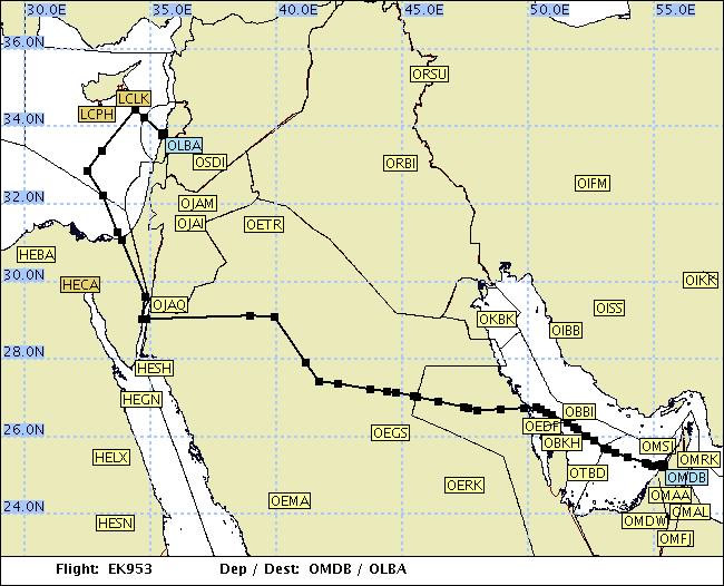 Vermits we zowel Israël als Syrië vermijden, duurt de vlucht "langer", want we vliegen ofwel via Irak en Turkijke rond, ofwel, zoals vandaag, via Saoedi-Arabië en Egypte.