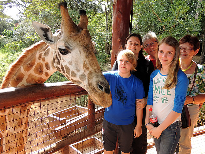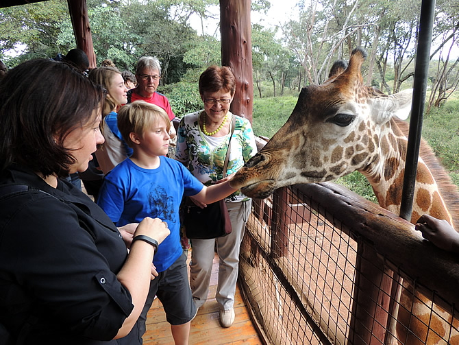 Na de middag hielden we eerst halt aan het Giraffe Center, waar de we de giraffen konden voeden...