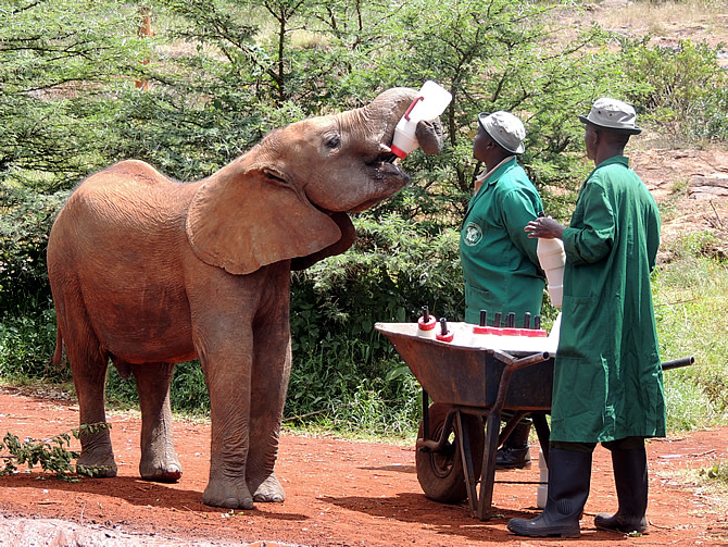 Dag 1 van onze 3-daagse mini-safari in en rond Nairobi (Kenia) begon bij het olifanten weeshuis (Sheldrick Trust Orphans Project).