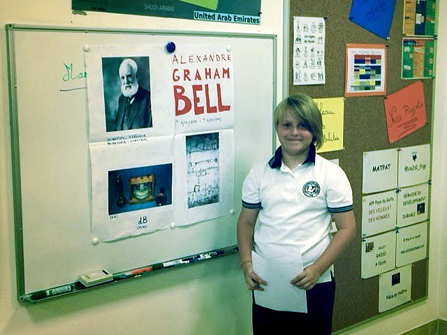In het kader van de lessen geschiedenis over de 19de eeuw, moest Roos (net zoals enkele andere leerlingen) een kleine presentatie over Graham Bell geven in de klas.