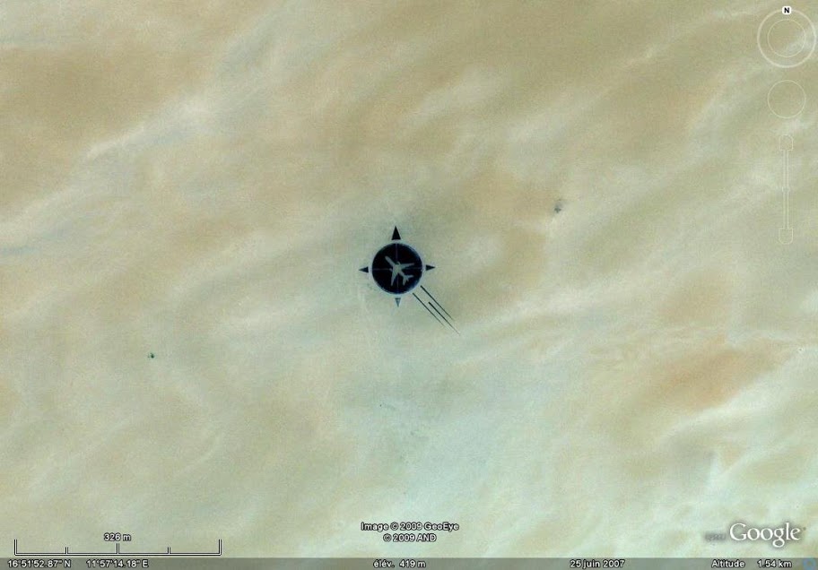 Maar niet zomaar een gedenksteen... Zichtbaar vanuit de lucht (zie 16° 51' 53,748" N - 11° 57' 13,362" E) is het één van de mooiste en tegelijkertijd een van de minst bereikbare ter wereld geworden.