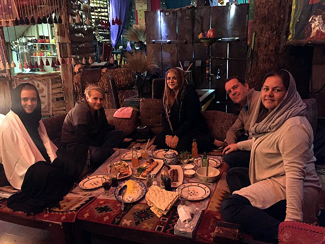 Met lokaal Perzisch eten, ergens in de Darakeh-wijk.