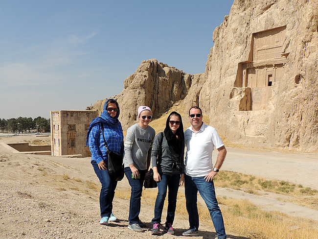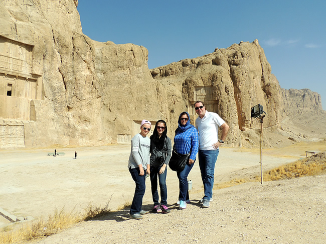 Tweede stop : Naqsh-e Rustam, ook wel de 'necropolis' van Persepolis genoemd met uit de rotswand gehouwen graftombes van 4 Achaemenidische sjahs.