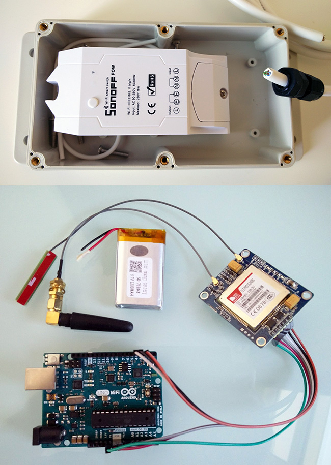 - Sonoff Pow WiFi Switch voor het aan/uit zetten van toestel (licht) vanop afstand